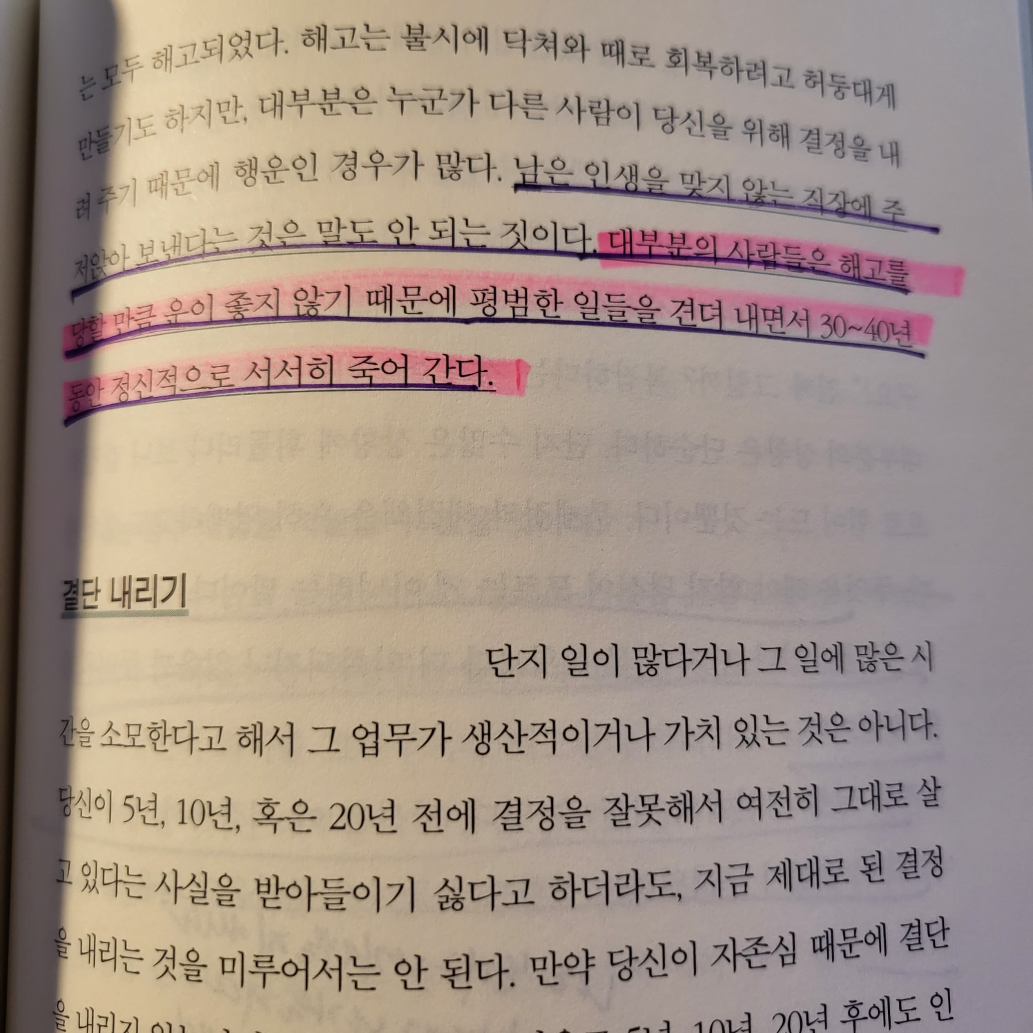 대부분의 사람들은 해고를 당할 만큼 운이 좋지않기 때문에 평범한 일들을 견뎌 내면서 30~40년 동안