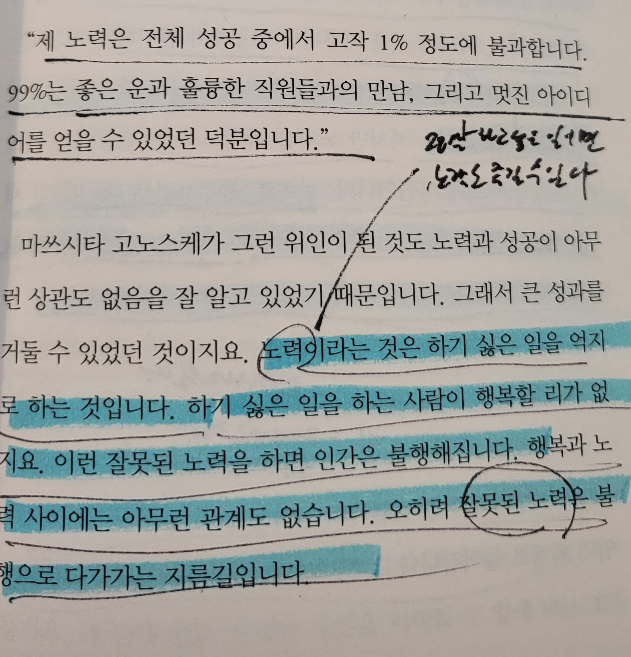 노력이라는 것은 하기 싫은 일을 억지로 하는 것입니다.