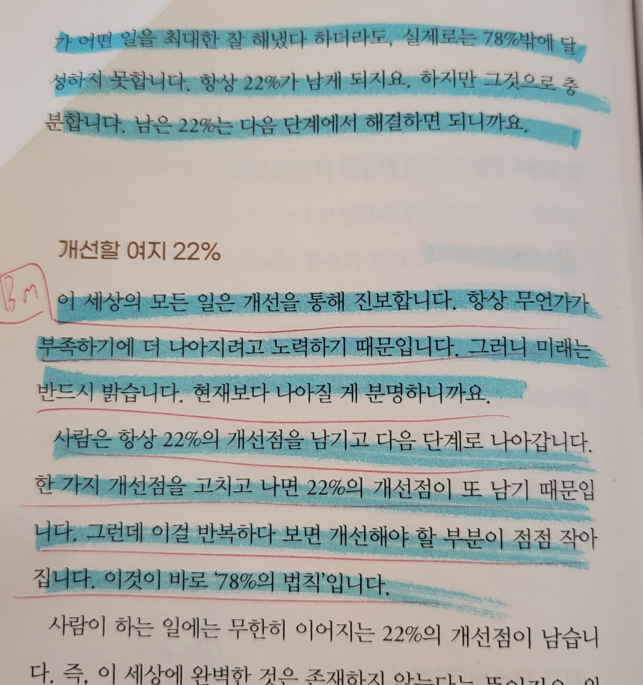 사람은 항상 22%의 개선점을 남기고 다음 단계로 나아갑니다.