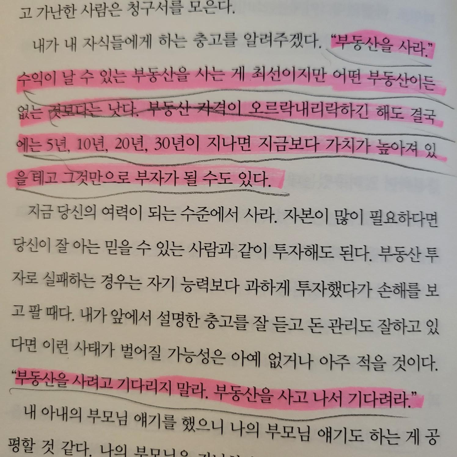 "부동산을 사라" 수익이 날 수있는 부동산을 사는게 최선이지만 어떤 부동산이든 없는 것보다는 낫다.