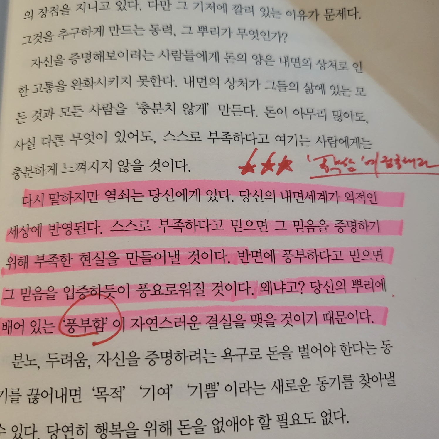 반면에 풍부하다고 믿으면 그 믿음을 입증하듯이 풍요로워질 것이다.