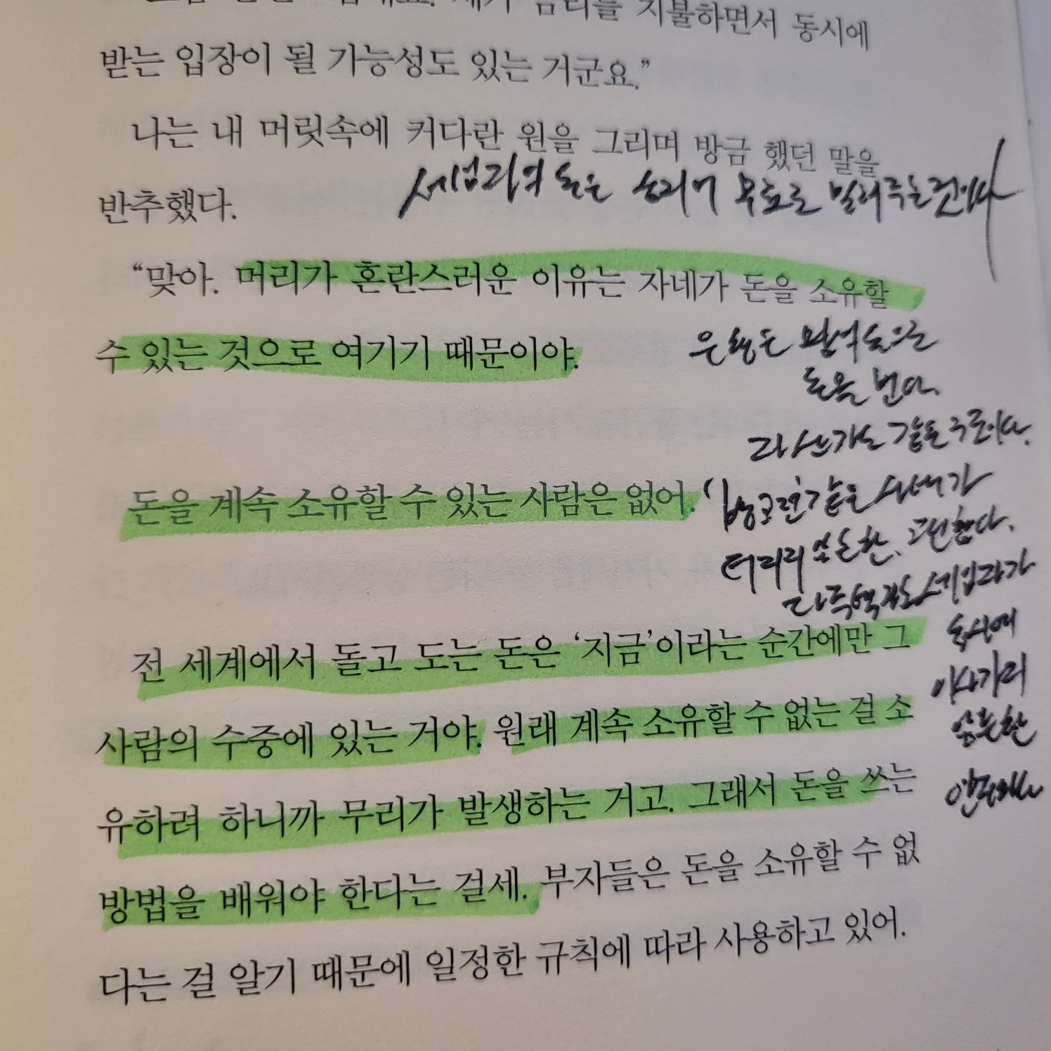 맞아, 머리가 혼란스러운 이유는 자네가 돈을 소유할 수 있는 것으로 여기기 때문이야.